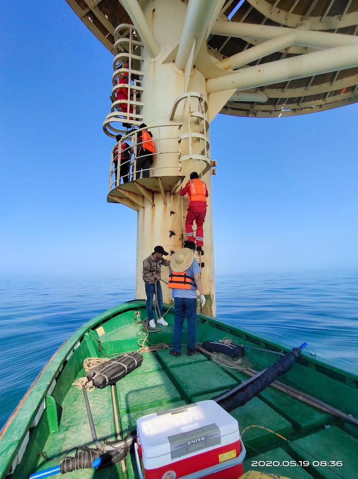烈日,海上。電科院海南分院出海作業團隊遠赴祖國南端,齊心協力與大自然爭分奪秒,確保海上設備在惡劣條件下仍能保持良好的應用狀態。